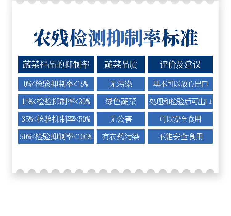 檢測標準:依據國家標準方法(GB/T5009.199-2003)以及世界衛(wèi)生組織WHO、世界糧農組織FAO殘留農藥檢測標準、世界環(huán)境保護局EPA參照攝入量等要求來設計。采用酶抑制率比色法對水果、蔬菜等農林產品中有機磷和氨基甲酸酯類農藥含量進行快速準確的檢測。